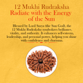 The Puranas describe the origin of Rudraksha from the tears of Lord Shiva, who is the incarnation of change and destruction. If the Sun is weak or set in the horoscope, then wearing 12 Mukhi Rudraksha is beneficial. According to Vedic astrology, the lord of 12 Mukhi Rudraksha is Sun God. For this reason, the person wearing 12 Mukhi Rudraksha develops courage, strength and leadership ability. After wearing it, the person's fortune rises. He is freed from the fear of enemies. The brightness of the Sun helps him to be successful in every task. If there is Surya Dosh in the horoscope of a person, that is, the Sun is weak, then wearing 12 Mukhi Rudraksha is very beneficial for that person.