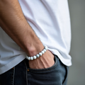 Howlite is a beautiful white stone with gray or black veining, often likened to marble. It is primarily composed of calcium borosilicate hydroxide and is commonly used in jewelry, including bracelets. Howlite is valued not just for its aesthetic appeal but also for its metaphysical properties.