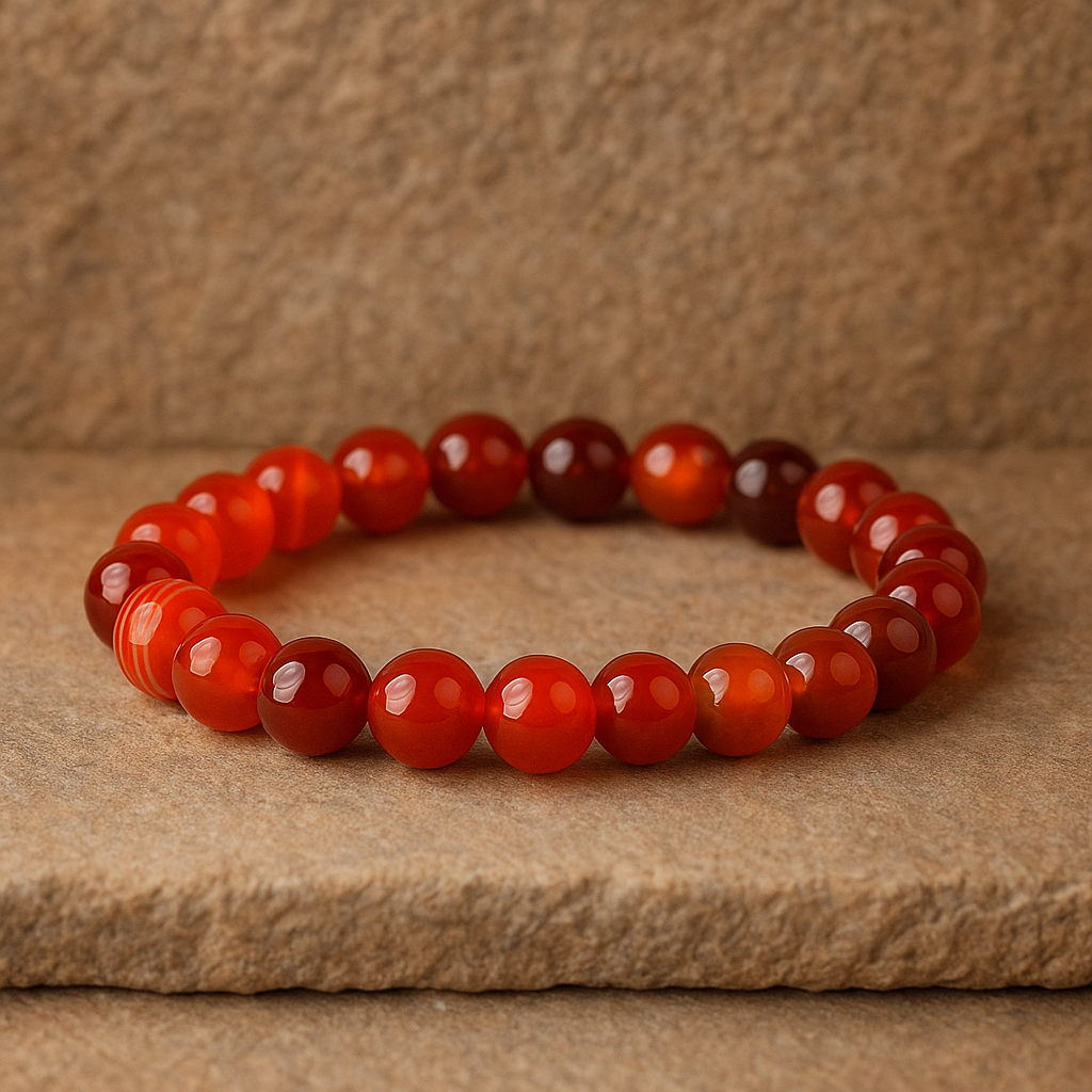 Explore our collection of stunning red carnelian bracelets, crafted with genuine gemstones and designed to empower your journey towards a life filled with vitality, creativity, courage, and emotional well-being.